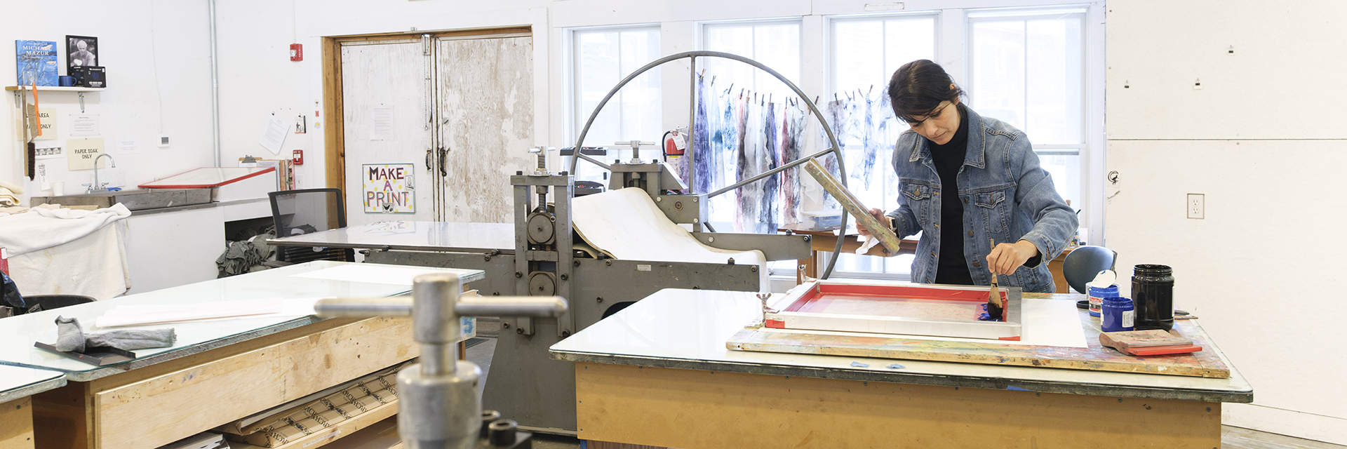 At select times throughout the spring, summer, and fall, one-week residencies are available for experienced printmakers in the Work Center’s state-of-the-art Michael Mazur Print Shop. Residents have full, private use of the print shop with 24/7 access. Optional on-site housing is also available. While no instruction is offered during this time, the studio is monitored and maintained for the duration of the residency. Contact  Vicky Tomayko, Print Studio Manager, at vtomayko@fawc.org for more information.