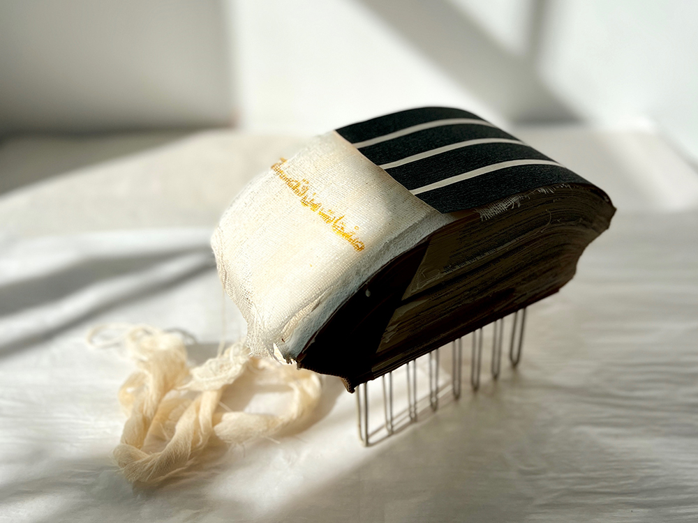 Americ أمريكانة is, at its heart, an immigrant autobiography about surviving the American dream. This narrative—which is my own personal story—will be told using sculptures created from repurposed antique books displayed in various manners throughout the exhibition space. Some will be wall hung salon-style while others piled in corners, a gesture reminiscent of the beautiful, ramshackle chaos of the Soor Al Azbakeya book sellers’ market in Cairo.